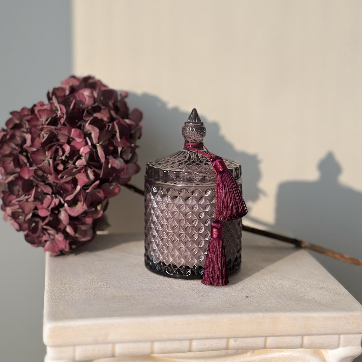 Ароматическая свеча 200 г из натурального кокосового воска, выполненная вручную. Помещена в изящный гранёный бордовый стакан в восточном стиле и дополнена аккуратной крышкой. Свеча горит ровно и чисто, наполняя пространство атмосферой тепла, а её примерное время горения — около 30 часов. Стильный акцент для интерьера и отличный вариант для подарка.